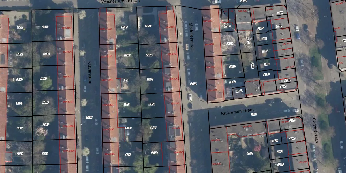 Madeliefstraat 41-A is gelegen op kadastraal perceel CLS00H2455. Deze kadastrale aanduiding is uniek en wordt gebruikt door het Kadaster om eigendomsrechten en andere zakelijke rechten vast te leggen. Het perceel maakt onderdeel uit van de kadastrale gemeente Charlois.
