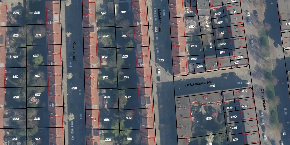 Madeliefstraat 43-B is gelegen op kadastraal perceel CLS00H2456. Deze kadastrale aanduiding is uniek en wordt gebruikt door het Kadaster om eigendomsrechten en andere zakelijke rechten vast te leggen. Het perceel maakt onderdeel uit van de kadastrale gemeente Charlois.
