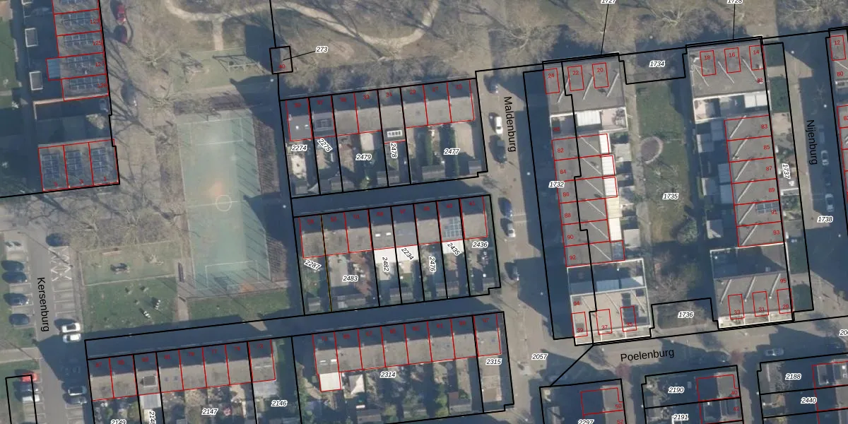 Gebruik de zoekbalk of klik op een perceel voor informatie over de adressen binnen dit perceel.