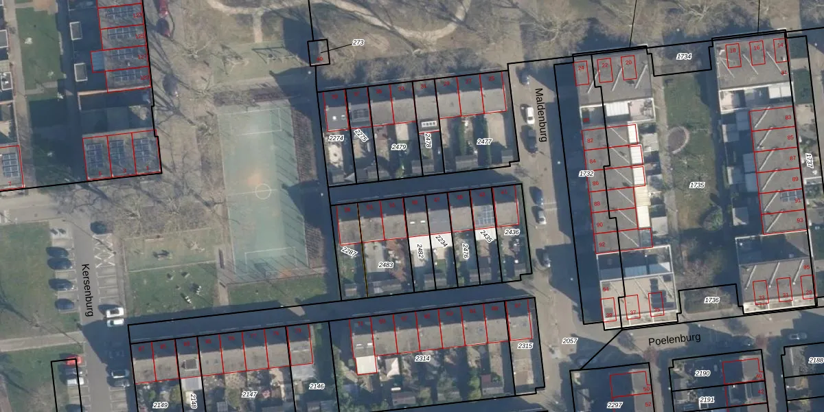 Gebruik de zoekbalk of klik op een perceel voor informatie over de adressen binnen dit perceel.