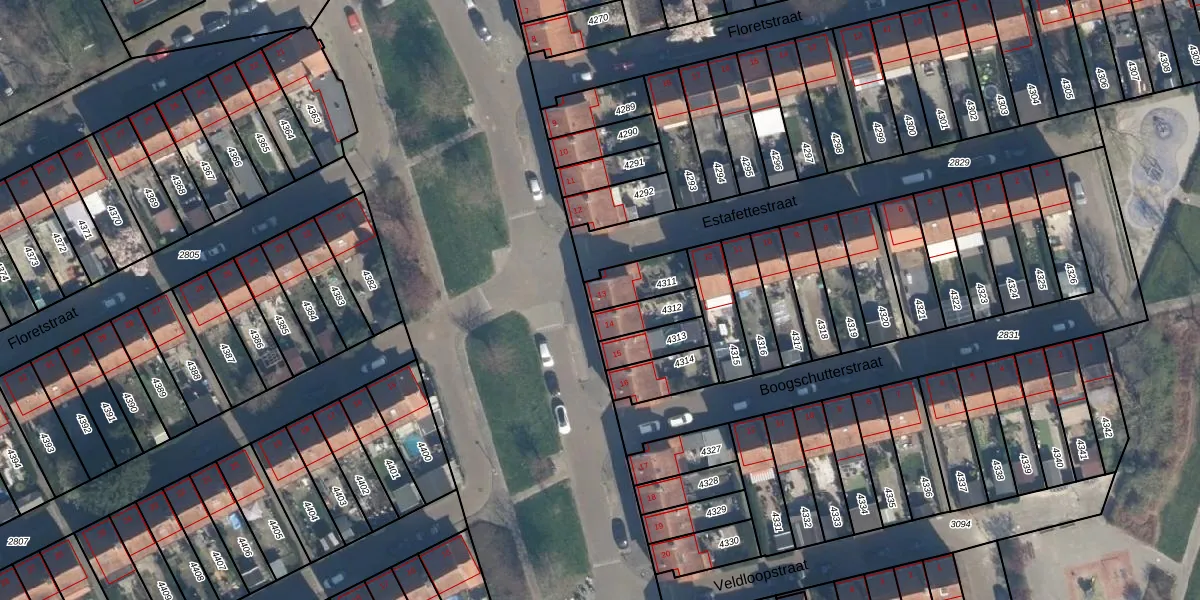 Gebruik de zoekbalk of klik op een perceel voor informatie over de adressen binnen dit perceel.