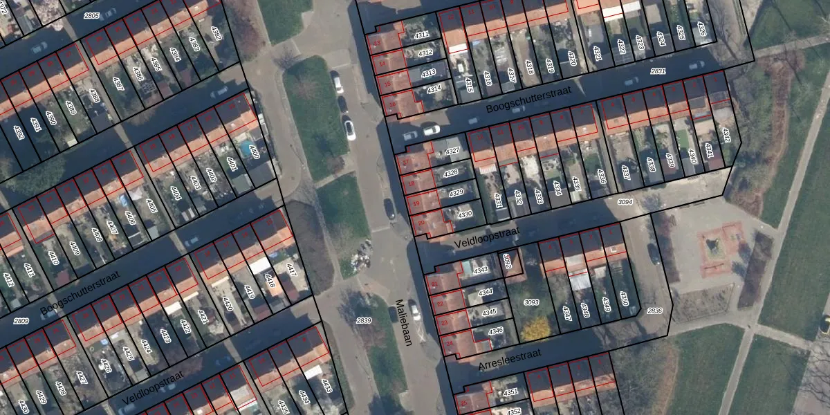 Het perceel waarop Maliebaan 19 staat heeft een oppervlakte van 89 m². Dit is een klein perceel. De perceeloppervlakte wordt geregistreerd door het Kadaster. Gedetailleerde informatie over de maten van dit perceel kunt u vinden in het rapport Kadastrale kaart met maatvoering van Maliebaan 19.