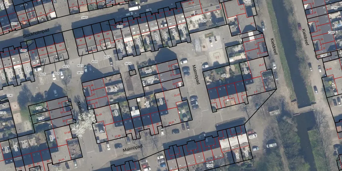 Het perceel waarop Malmöpad 19 staat heeft een oppervlakte van 350 m². Dit is een groot perceel. De perceeloppervlakte wordt geregistreerd door het Kadaster. Gedetailleerde informatie over de maten van dit perceel kunt u vinden in het rapport Kadastrale kaart met maatvoering van Malmöpad 19.