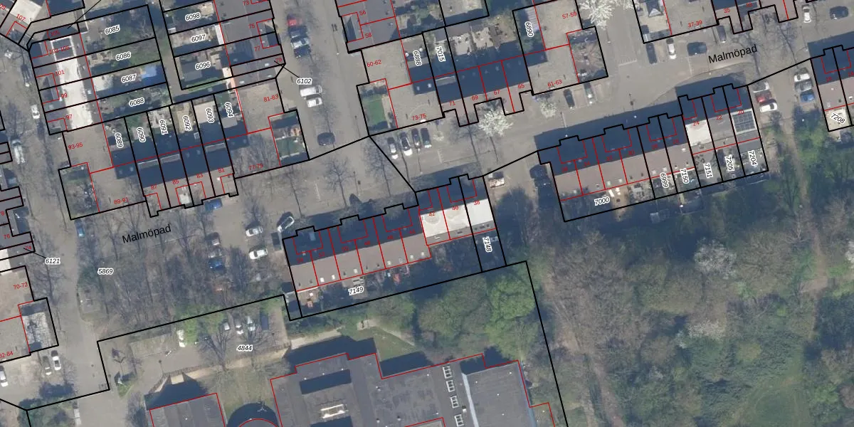 Het perceel waarop Malmöpad 42 staat heeft een oppervlakte van 867 m². Dit is een groot perceel. De perceeloppervlakte wordt geregistreerd door het Kadaster. Gedetailleerde informatie over de maten van dit perceel kunt u vinden in het rapport Kadastrale kaart met maatvoering van Malmöpad 42.