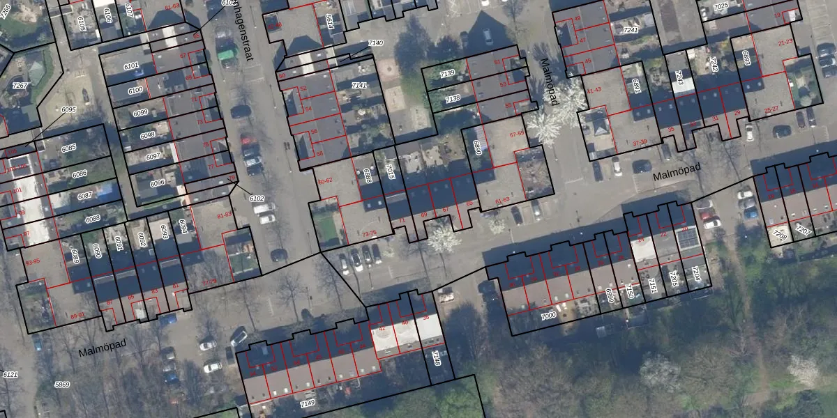 Het perceel waarop Malmöpad 69 staat heeft een oppervlakte van 974 m². Dit is een groot perceel. De perceeloppervlakte wordt geregistreerd door het Kadaster. Gedetailleerde informatie over de maten van dit perceel kunt u vinden in het rapport Kadastrale kaart met maatvoering van Malmöpad 69.