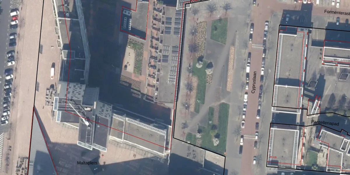 Het perceel waarop Maltaplein 22 staat heeft een oppervlakte van 2,3 ha. Dit is een zeer groot perceel. De perceeloppervlakte wordt geregistreerd door het Kadaster. Gedetailleerde informatie over de maten van dit perceel kunt u vinden in het rapport Kadastrale kaart met maatvoering van Maltaplein 22.