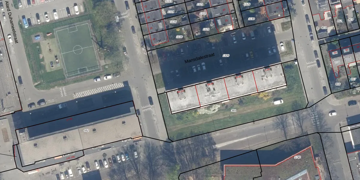 Het perceel waarop Mansdalestraat 106 staat heeft een oppervlakte van 825 m². Dit is een groot perceel. De perceeloppervlakte wordt geregistreerd door het Kadaster. Gedetailleerde informatie over de maten van dit perceel kunt u vinden in het rapport Kadastrale kaart met maatvoering van Mansdalestraat 106.