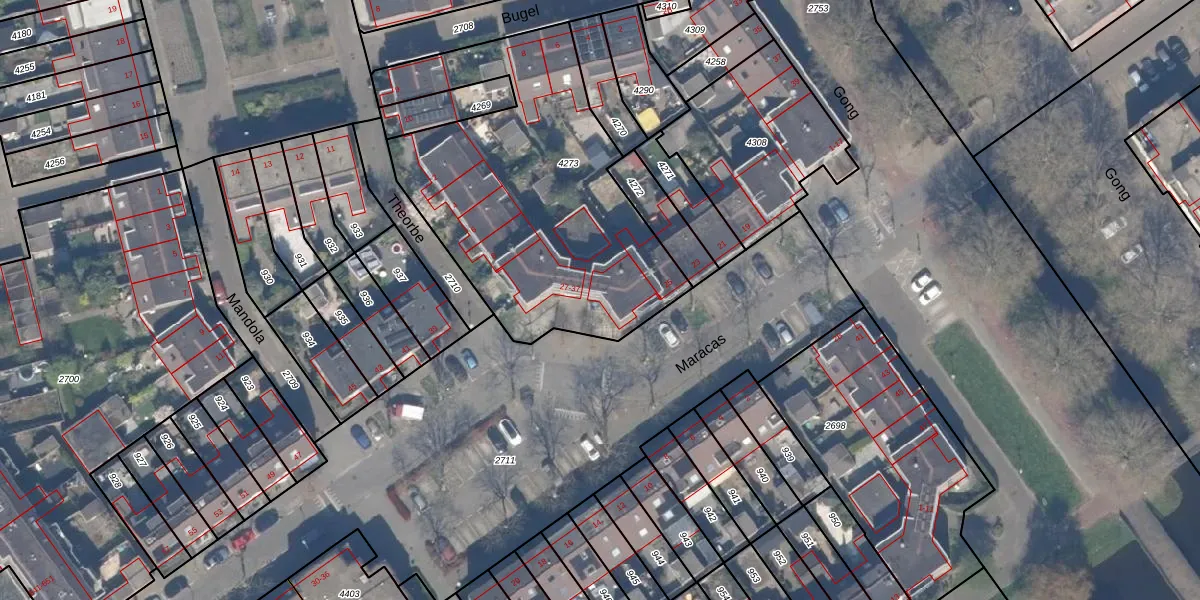 Het perceel waarop Maracas 33 staat heeft een oppervlakte van 1560 m². Dit is een zeer groot perceel. De perceeloppervlakte wordt geregistreerd door het Kadaster. Gedetailleerde informatie over de maten van dit perceel kunt u vinden in het rapport Kadastrale kaart met maatvoering van Maracas 33.