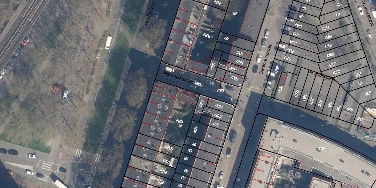 Marentakstraat 9-B-01 is gelegen op kadastraal perceel CLS00G3315. Deze kadastrale aanduiding is uniek en wordt gebruikt door het Kadaster om eigendomsrechten en andere zakelijke rechten vast te leggen. Het perceel maakt onderdeel uit van de kadastrale gemeente Charlois.