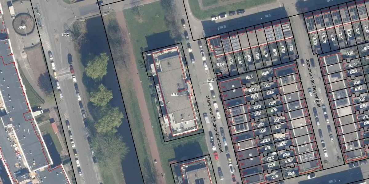 Het perceel waarop Marie van Eijsden-Vinkstraat 413 staat heeft een oppervlakte van 1045 m². Dit is een zeer groot perceel. De perceeloppervlakte wordt geregistreerd door het Kadaster. Gedetailleerde informatie over de maten van dit perceel kunt u vinden in het rapport Kadastrale kaart met maatvoering van Marie van Eijsden-Vinkstraat 413.