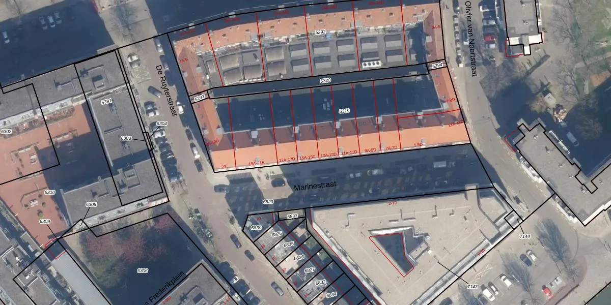 Marinestraat 15-C is gelegen op kadastraal perceel RTD05Q5319. Deze kadastrale aanduiding is uniek en wordt gebruikt door het Kadaster om eigendomsrechten en andere zakelijke rechten vast te leggen. Het perceel maakt onderdeel uit van de kadastrale gemeente Rotterdam.