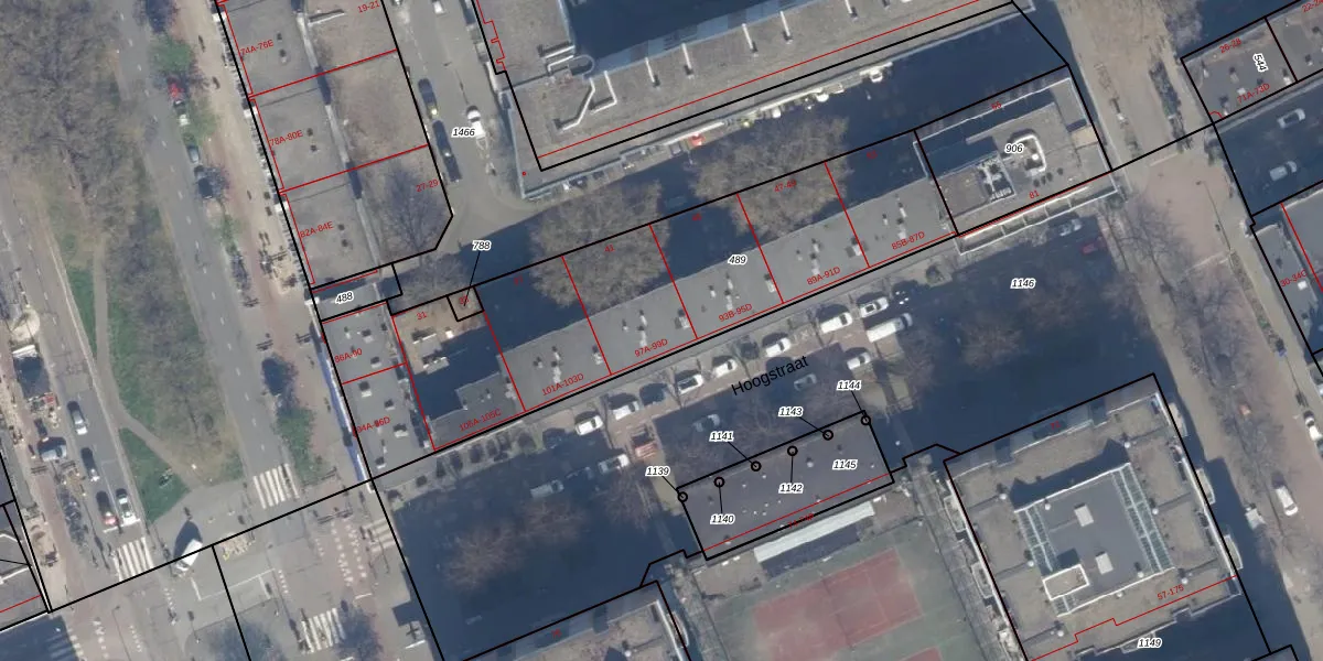 Het adres ligt op het perceel RTD04-AF-489, dat zich in de kadastrale gemeente Rotterdam bevindt. De oppervlakte van het perceel is 1891 m². Dat is groter dan gemiddeld in Rotterdam, waar de gemiddelde perceeloppervlakte op 1239,97 m² ligt. Het grootste perceel in de kadastrale gemeente is 17,3 ha. Het kleinste perceel heeft een oppervlakte van 0 m². Op het perceel liggen in totaal 63 adressen. De laatste wijziging in het de Basisregistratie Kadaster (BRK) was op 09-01-2003.