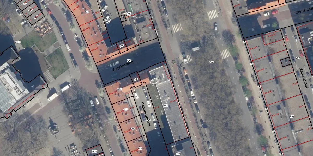 Het adres ligt op het perceel RTD04-AF-742, dat zich in de kadastrale gemeente Rotterdam bevindt. Het perceel is 851 m² groot. Dat is kleiner dan de gemiddelde perceeloppervlakte in Rotterdam, dat op 1239,97 m² ligt. De grootste perceeloppervlakte in de kadastrale gemeente is 17,3 ha. De kleinste oppervlakte bedraagt 0 m². Op het perceel zijn 39 adressen aanwezig. De huidige grenzen van het perceel zijn digitaal in de Basisregistratie Kadaster (BRK) geregistreerd op 20-01-2003.