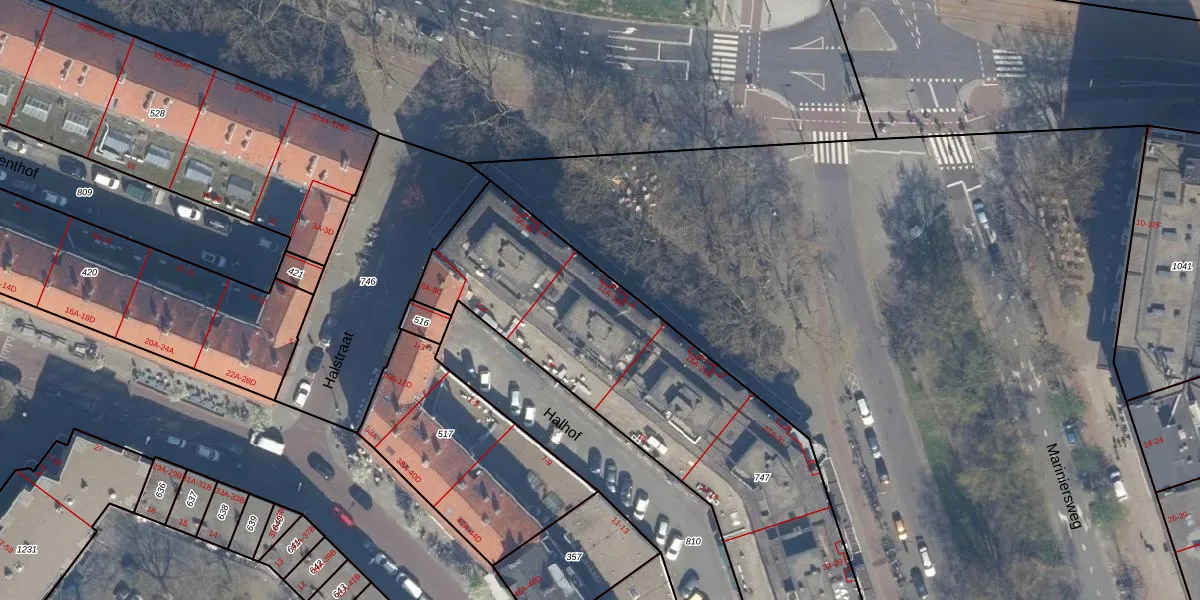 Het adres ligt op het perceel RTD04-AF-747, dat zich in de kadastrale gemeente Rotterdam bevindt. De oppervlakte van het perceel is 2513 m². Dat is groter dan gemiddeld in Rotterdam, waar de gemiddelde perceeloppervlakte op 1239,97 m² ligt. Het grootste perceel in de kadastrale gemeente is 17,3 ha. Het kleinste perceel heeft een oppervlakte van 0 m². Op het perceel liggen in totaal 95 adressen. In de Basisregistratie Kadaster (BRK) werden de grenzen van het perceel geregistreerd op 20-01-2003.