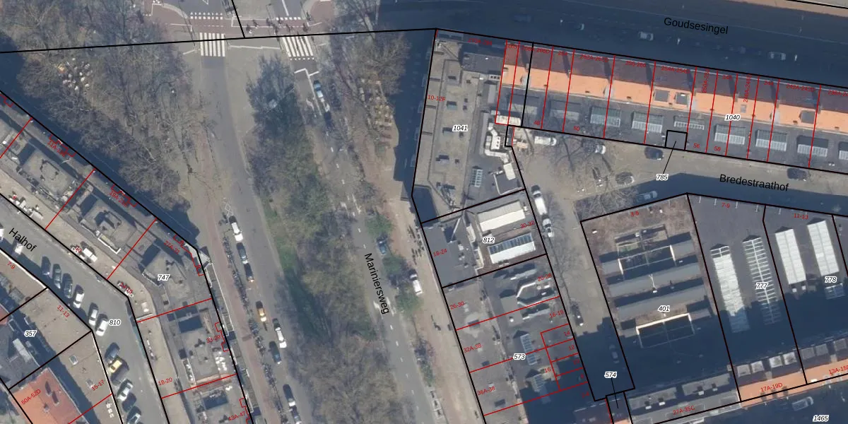 Het adres ligt op het perceel RTD04-AF-1041, dat zich in de kadastrale gemeente Rotterdam bevindt. Het perceel is 943 m² groot. Dat is kleiner dan de gemiddelde perceeloppervlakte in Rotterdam, dat op 1239,97 m² ligt. De grootste perceeloppervlakte in de kadastrale gemeente is 17,3 ha. De kleinste oppervlakte bedraagt 0 m². Op het perceel zijn 44 adressen aanwezig. De huidige grenzen van het perceel zijn digitaal in de Basisregistratie Kadaster (BRK) geregistreerd op 20-01-2003.