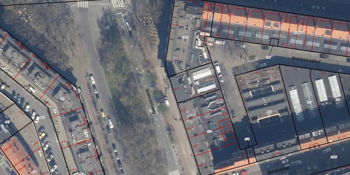 Het adres ligt op het perceel RTD04-AF-812, dat zich in de kadastrale gemeente Rotterdam bevindt. Het perceel is 416 m² groot. Dat is kleiner dan de gemiddelde perceeloppervlakte in Rotterdam, dat op 1239,97 m² ligt. Het grootste perceel in de kadastrale gemeente is 17,3 ha. Het kleinste perceel heeft een oppervlakte van 0 m². Op het perceel zijn 12 adressen aanwezig. De laatste wijziging in het de Basisregistratie Kadaster (BRK) was op 20-01-2003.