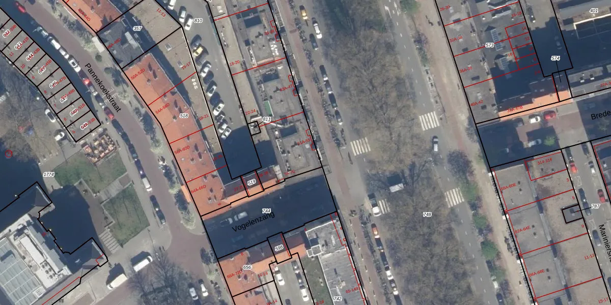Het adres ligt op het perceel RTD04-AF-747, dat zich in de kadastrale gemeente Rotterdam bevindt. De oppervlakte van het perceel is 2513 m². Dat is groter dan gemiddeld in Rotterdam, waar de gemiddelde perceeloppervlakte op 1239,97 m² ligt. Het kleinste perceel in de kadastrale gemeente is 0 m² groot. De grootste perceeloppervlakte is 17,3 ha. Op het perceel liggen in totaal 95 adressen. De huidige grenzen van het perceel zijn digitaal in de Basisregistratie Kadaster (BRK) geregistreerd op 20-01-2003.