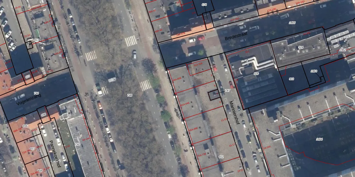 Het adres ligt op het perceel RTD04-AF-651, dat zich in de kadastrale gemeente Rotterdam bevindt. De oppervlakte van het perceel is 2492 m². Dat is groter dan gemiddeld in Rotterdam, waar de gemiddelde perceeloppervlakte op 1239,97 m² ligt. Het kleinste perceel in de kadastrale gemeente is 0 m² groot. De grootste perceeloppervlakte is 17,3 ha. Op het perceel zijn 83 adressen aanwezig. In de Basisregistratie Kadaster (BRK) werden de grenzen van het perceel geregistreerd op 25-07-2006.