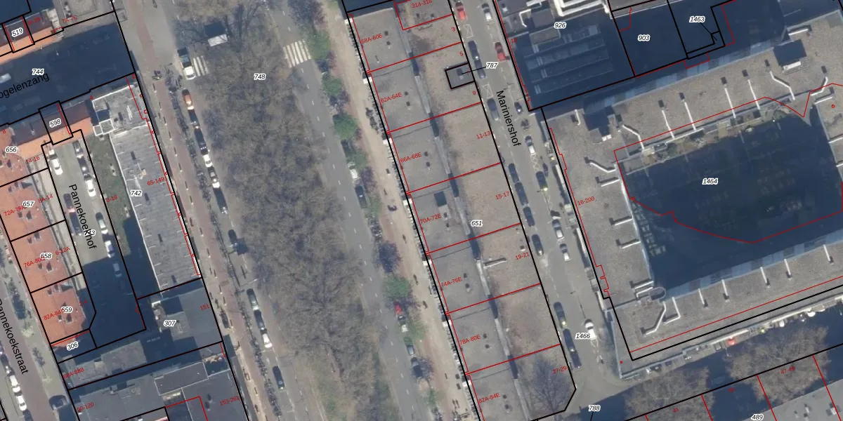 Het adres ligt op het perceel RTD04-AF-651, dat zich in de kadastrale gemeente Rotterdam bevindt. De oppervlakte van het perceel is 2492 m². Dat is groter dan gemiddeld in Rotterdam, waar de gemiddelde perceeloppervlakte op 1239,97 m² ligt. Het kleinste perceel in de kadastrale gemeente is 0 m² groot. De grootste perceeloppervlakte is 17,3 ha. Er zijn 83 adressen aanwezig op het perceel. In de Basisregistratie Kadaster (BRK) werden de grenzen van het perceel geregistreerd op 25-07-2006.