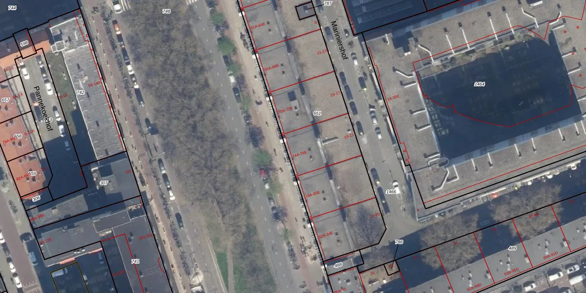 Mariniersweg 74-A is gelegen op kadastraal perceel RTD04AF651. Deze kadastrale aanduiding is uniek en wordt gebruikt door het Kadaster om eigendomsrechten en andere zakelijke rechten vast te leggen. Het perceel maakt onderdeel uit van de kadastrale gemeente Rotterdam.