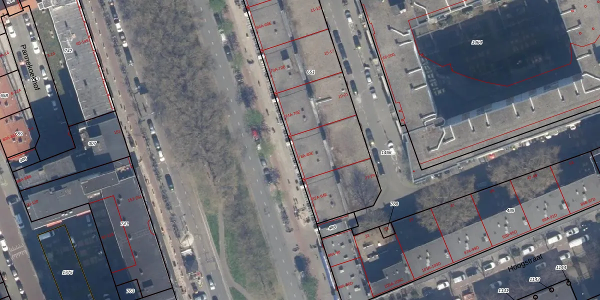 Het adres ligt op het perceel RTD04-AF-651, dat zich in de kadastrale gemeente Rotterdam bevindt. De oppervlakte van het perceel is 2492 m². Dat is groter dan gemiddeld in Rotterdam, waar de gemiddelde perceeloppervlakte op 1239,97 m² ligt. De grootste perceeloppervlakte in de kadastrale gemeente is 17,3 ha. De kleinste oppervlakte bedraagt 0 m². Er zijn 83 adressen aanwezig op het perceel. De huidige grenzen van het perceel zijn digitaal in de Basisregistratie Kadaster (BRK) geregistreerd op 25-07-2006.