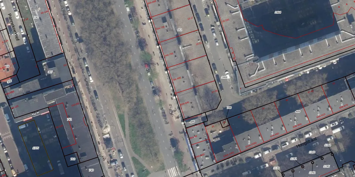 Het adres ligt op het perceel RTD04-AF-651, dat zich in de kadastrale gemeente Rotterdam bevindt. De oppervlakte van het perceel is 2492 m². Dat is groter dan gemiddeld in Rotterdam, waar de gemiddelde perceeloppervlakte op 1239,97 m² ligt. De grootste perceeloppervlakte in de kadastrale gemeente is 17,3 ha. De kleinste oppervlakte bedraagt 0 m². Er zijn 83 adressen aanwezig op het perceel. In de Basisregistratie Kadaster (BRK) werden de grenzen van het perceel geregistreerd op 25-07-2006.