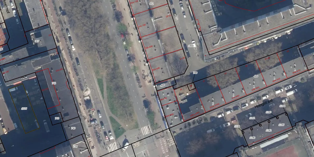 Het adres ligt op het perceel RTD04-AF-651, dat zich in de kadastrale gemeente Rotterdam bevindt. De oppervlakte van het perceel is 2492 m². Dat is groter dan gemiddeld in Rotterdam, waar de gemiddelde perceeloppervlakte op 1239,97 m² ligt. De grootste perceeloppervlakte in de kadastrale gemeente is 17,3 ha. De kleinste oppervlakte bedraagt 0 m². Op het perceel liggen in totaal 83 adressen. In de Basisregistratie Kadaster (BRK) werden de grenzen van het perceel geregistreerd op 25-07-2006.