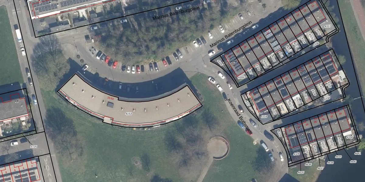 Marinus Batenburgplein 23 is gelegen op kadastraal perceel KLG00C4153. Deze kadastrale aanduiding is uniek en wordt gebruikt door het Kadaster om eigendomsrechten en andere zakelijke rechten vast te leggen. Het perceel maakt onderdeel uit van de kadastrale gemeente Kralingen.