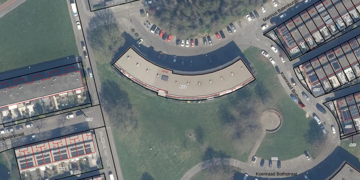 Marinus Batenburgplein 39 is gelegen op kadastraal perceel KLG00C4153. Deze kadastrale aanduiding is uniek en wordt gebruikt door het Kadaster om eigendomsrechten en andere zakelijke rechten vast te leggen. Het perceel maakt onderdeel uit van de kadastrale gemeente Kralingen.