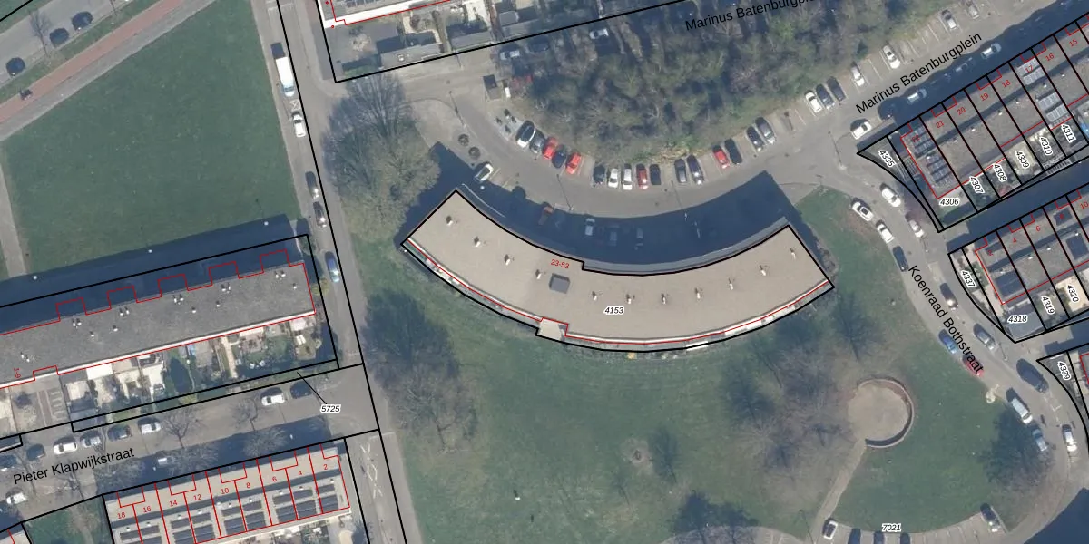 Marinus Batenburgplein 50 is gelegen op kadastraal perceel KLG00C4153. Deze kadastrale aanduiding is uniek en wordt gebruikt door het Kadaster om eigendomsrechten en andere zakelijke rechten vast te leggen. Het perceel maakt onderdeel uit van de kadastrale gemeente Kralingen.