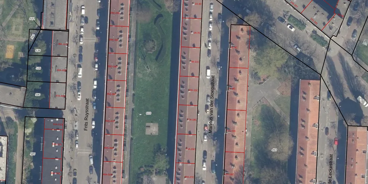 Marinus van der Stoepstraat 13-C is gelegen op kadastraal perceel RTD04AE633. Deze kadastrale aanduiding is uniek en wordt gebruikt door het Kadaster om eigendomsrechten en andere zakelijke rechten vast te leggen. Het perceel maakt onderdeel uit van de kadastrale gemeente Rotterdam.