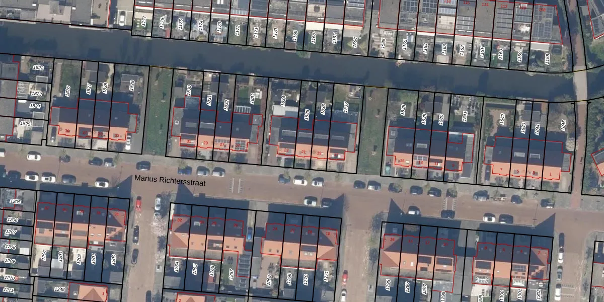 Gebruik de zoekbalk of klik op een perceel voor informatie over de adressen binnen dit perceel.