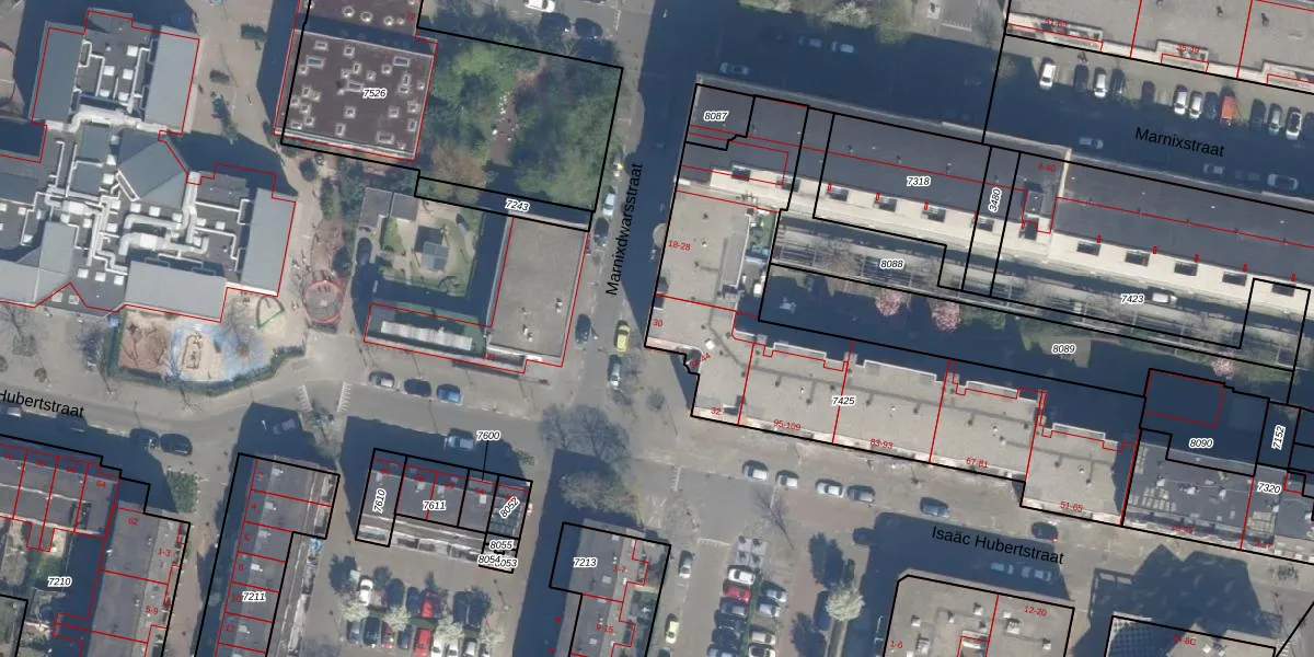 Het perceel waarop Marnixdwarsstraat 30 staat heeft een oppervlakte van 1715 m². Dit is een zeer groot perceel. De perceeloppervlakte wordt geregistreerd door het Kadaster. Gedetailleerde informatie over de maten van dit perceel kunt u vinden in het rapport Kadastrale kaart met maatvoering van Marnixdwarsstraat 30.