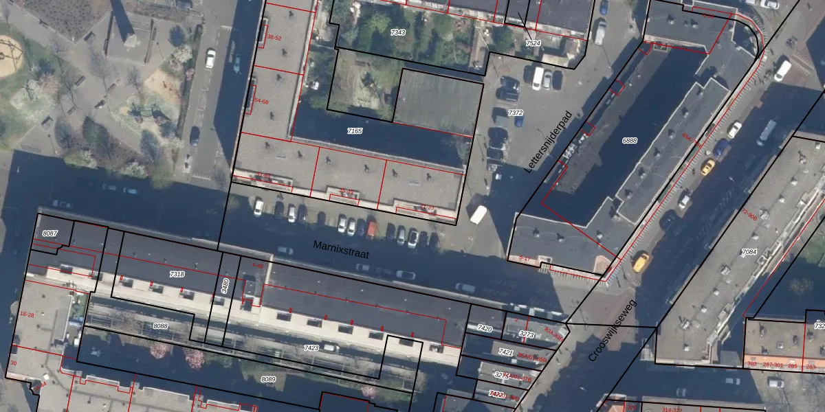 Het perceel waarop Marnixstraat 31 staat heeft een oppervlakte van 2165 m². Dit is een zeer groot perceel. De perceeloppervlakte wordt geregistreerd door het Kadaster. Gedetailleerde informatie over de maten van dit perceel kunt u vinden in het rapport Kadastrale kaart met maatvoering van Marnixstraat 31.
