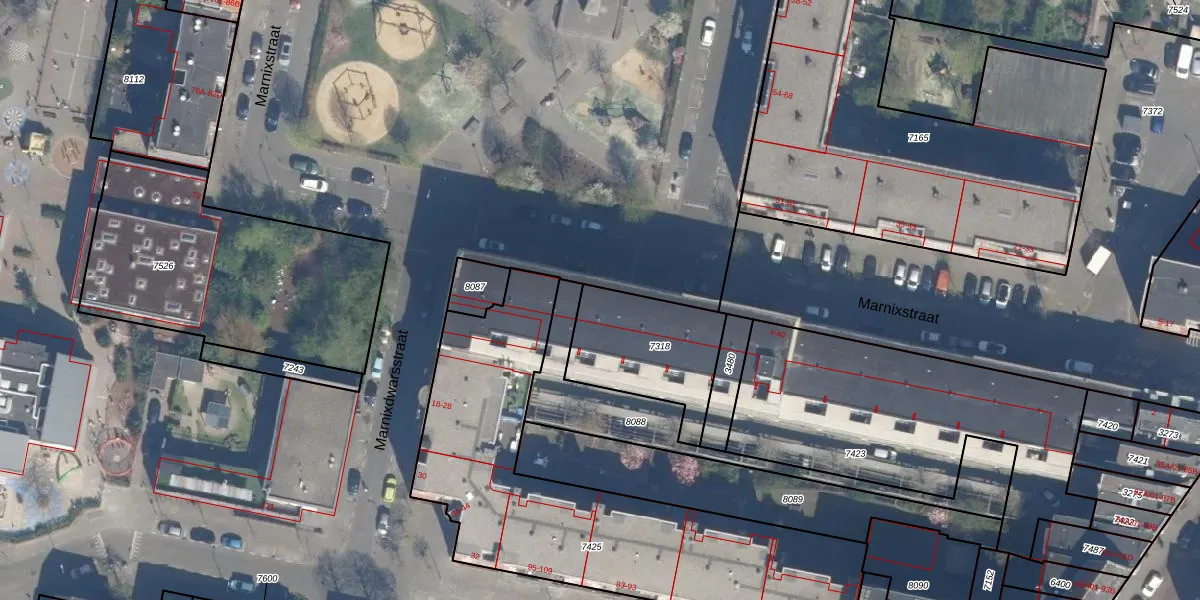 Marnixstraat 34 is gelegen op kadastraal perceel RTD07R7318. Deze kadastrale aanduiding is uniek en wordt gebruikt door het Kadaster om eigendomsrechten en andere zakelijke rechten vast te leggen. Het perceel maakt onderdeel uit van de kadastrale gemeente Rotterdam.