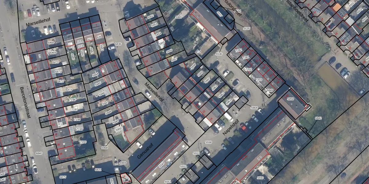 Het perceel waarop Marseillehof 16 staat heeft een oppervlakte van 130 m². Dit is een middelgroot perceel. De perceeloppervlakte wordt geregistreerd door het Kadaster. Gedetailleerde informatie over de maten van dit perceel kunt u vinden in het rapport Kadastrale kaart met maatvoering van Marseillehof 16.