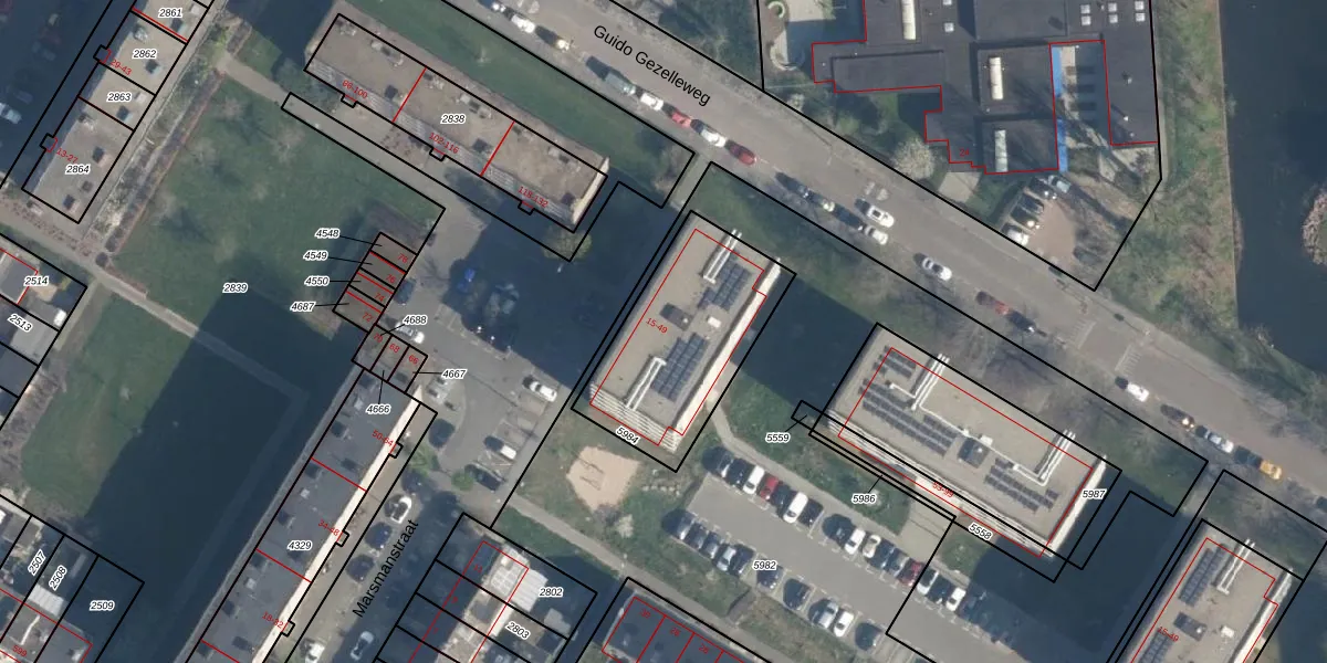 Het perceel waarop Marsmanstraat 31 staat heeft een oppervlakte van 643 m². Dit is een groot perceel. De perceeloppervlakte wordt geregistreerd door het Kadaster. Gedetailleerde informatie over de maten van dit perceel kunt u vinden in het rapport Kadastrale kaart met maatvoering van Marsmanstraat 31.