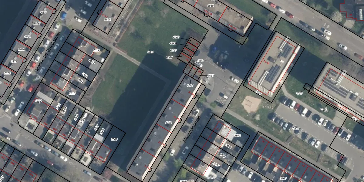 Het perceel waarop Marsmanstraat 58 staat heeft een oppervlakte van 638 m². Dit is een groot perceel. De perceeloppervlakte wordt geregistreerd door het Kadaster. Gedetailleerde informatie over de maten van dit perceel kunt u vinden in het rapport Kadastrale kaart met maatvoering van Marsmanstraat 58.