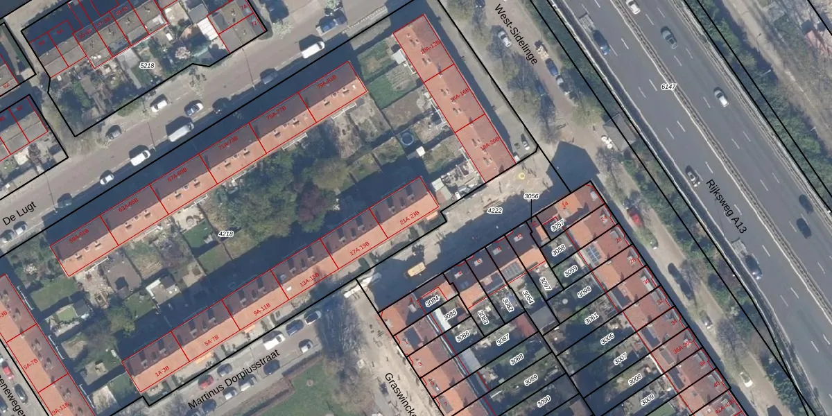 Het perceel waarop Martinus Dorpiusstraat 23-B staat heeft een oppervlakte van 6418 m². Dit is een zeer groot perceel. De perceeloppervlakte wordt geregistreerd door het Kadaster. Gedetailleerde informatie over de maten van dit perceel kunt u vinden in het rapport Kadastrale kaart met maatvoering van Martinus Dorpiusstraat 23-B.