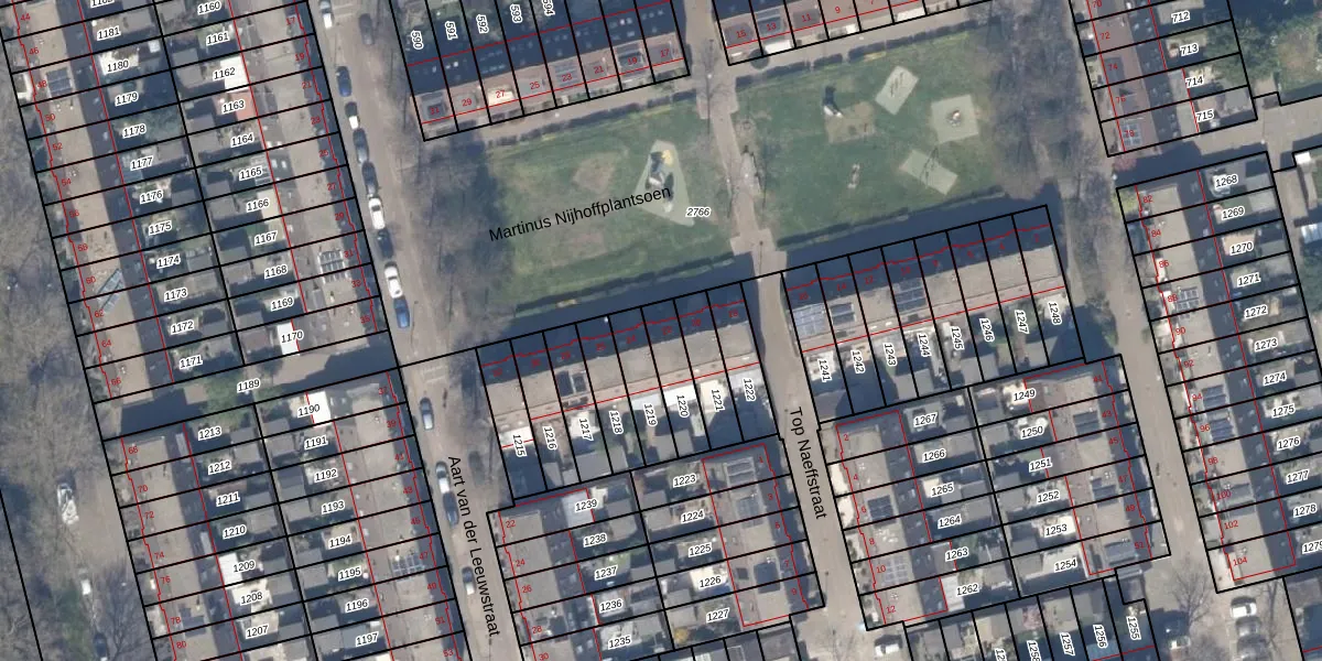 Gebruik de zoekbalk of klik op een perceel voor informatie over de adressen binnen dit perceel.