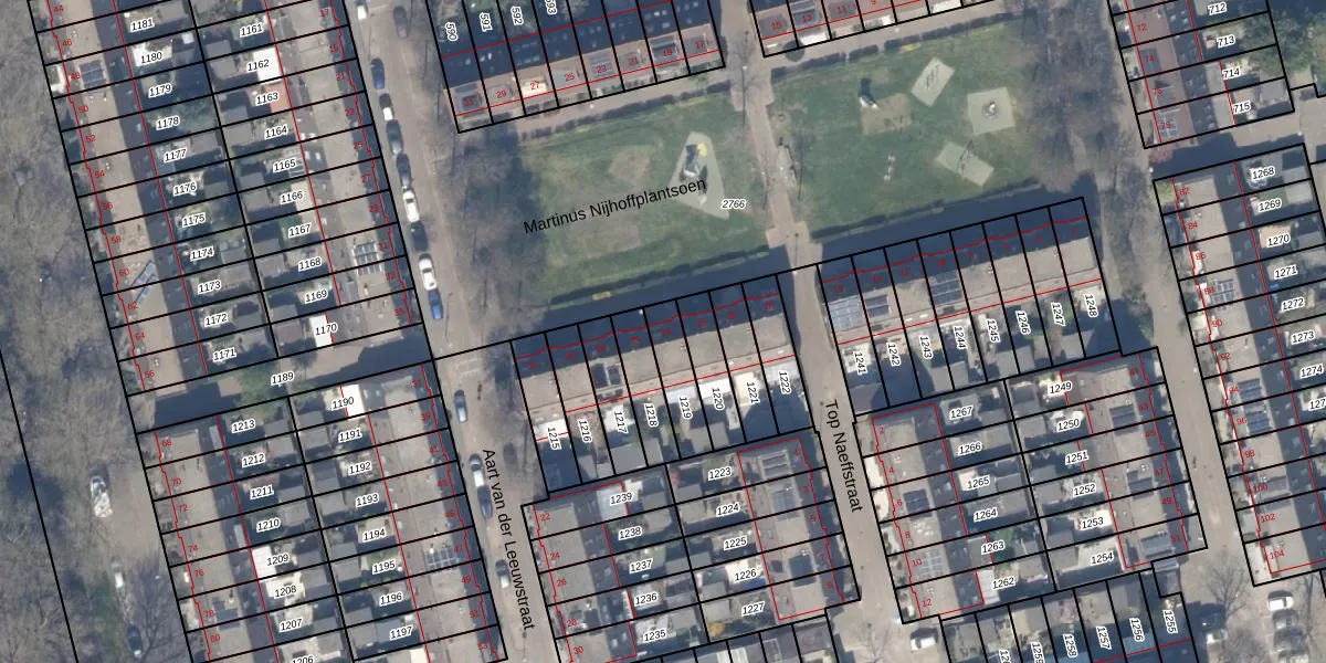 Gebruik de zoekbalk of klik op een perceel voor informatie over de adressen binnen dit perceel.