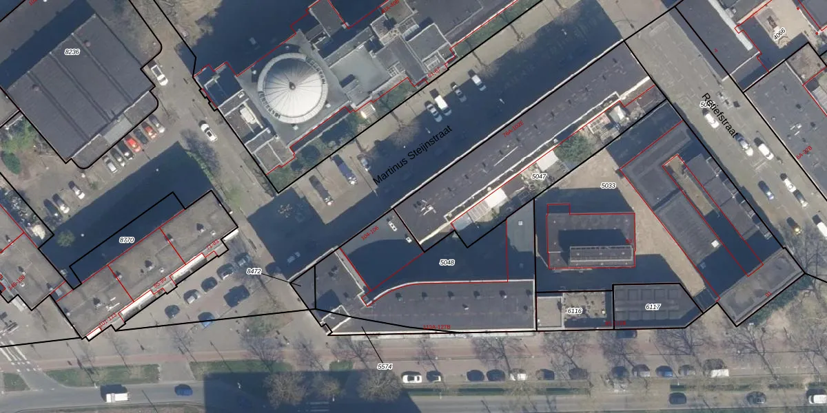 Martinus Steijnstraat 102-B is gelegen op kadastraal perceel CLS00G5047. Deze kadastrale aanduiding is uniek en wordt gebruikt door het Kadaster om eigendomsrechten en andere zakelijke rechten vast te leggen. Het perceel maakt onderdeel uit van de kadastrale gemeente Charlois.