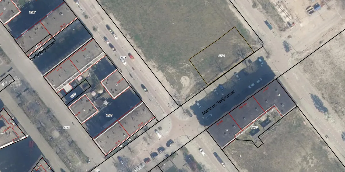 Het perceel waarop Martinus Steijnstraat 39-J staat heeft een oppervlakte van 6731 m². Dit is een zeer groot perceel. De perceeloppervlakte wordt geregistreerd door het Kadaster. Gedetailleerde informatie over de maten van dit perceel kunt u vinden in het rapport Kadastrale kaart met maatvoering van Martinus Steijnstraat 39-J.