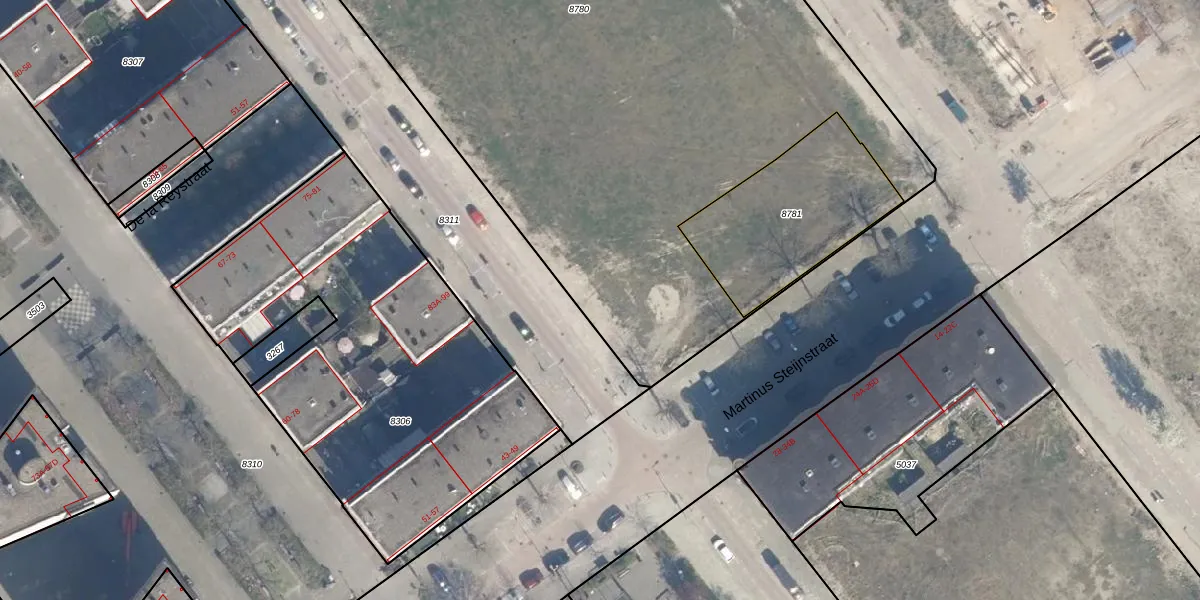 Het perceel waarop Martinus Steijnstraat 39-K staat heeft een oppervlakte van 6731 m². Dit is een zeer groot perceel. De perceeloppervlakte wordt geregistreerd door het Kadaster. Gedetailleerde informatie over de maten van dit perceel kunt u vinden in het rapport Kadastrale kaart met maatvoering van Martinus Steijnstraat 39-K.