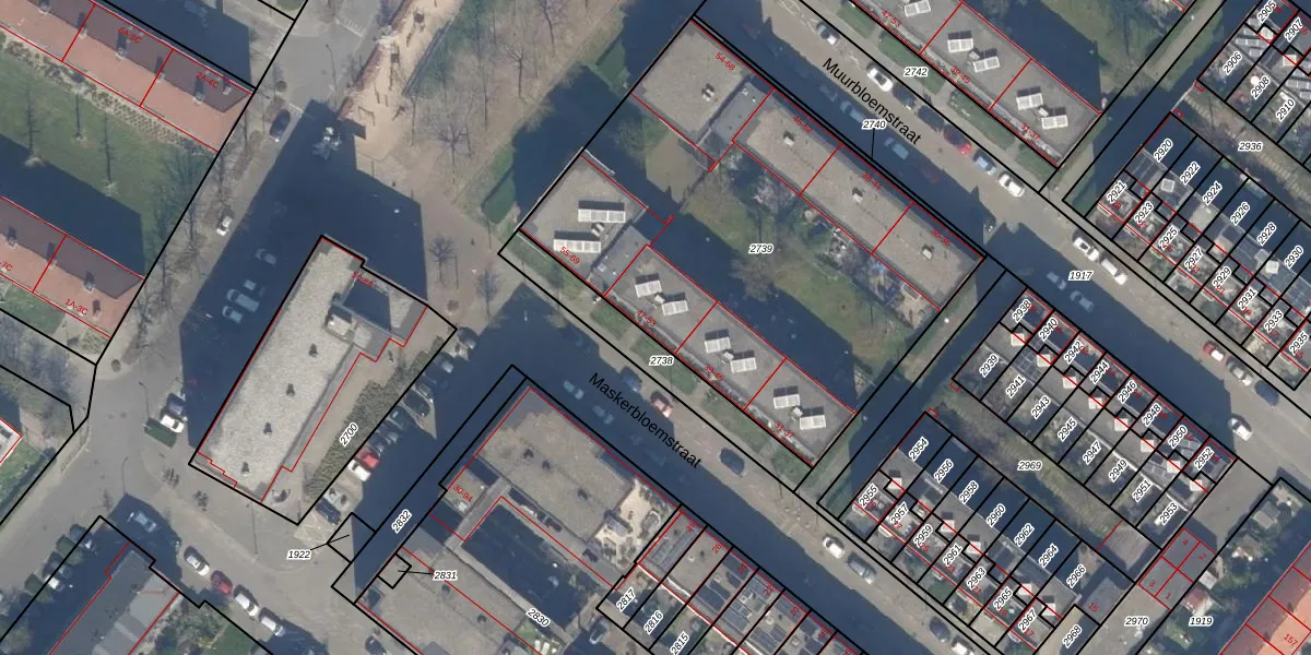 Het perceel waarop Maskerbloemstraat 49 staat heeft een oppervlakte van 2410 m². Dit is een zeer groot perceel. De perceeloppervlakte wordt geregistreerd door het Kadaster. Gedetailleerde informatie over de maten van dit perceel kunt u vinden in het rapport Kadastrale kaart met maatvoering van Maskerbloemstraat 49.