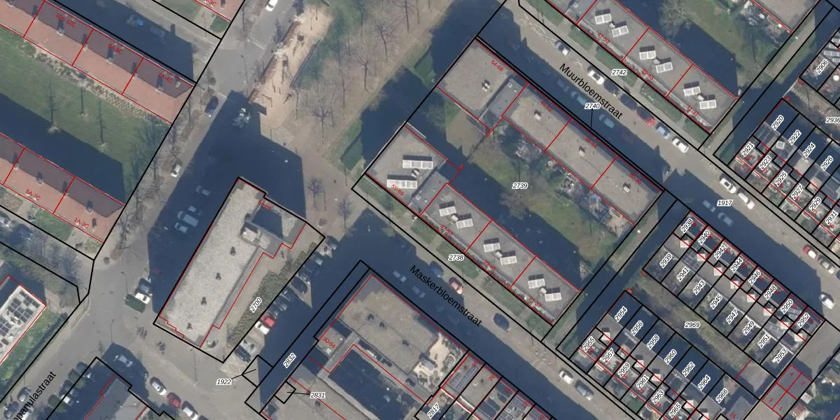 Het perceel waarop Maskerbloemstraat 63 staat heeft een oppervlakte van 2410 m². Dit is een zeer groot perceel. De perceeloppervlakte wordt geregistreerd door het Kadaster. Gedetailleerde informatie over de maten van dit perceel kunt u vinden in het rapport Kadastrale kaart met maatvoering van Maskerbloemstraat 63.