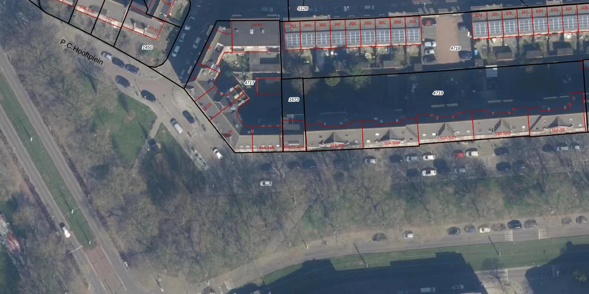 Het adres is gelegen op perceel 1673 in de sectie Z en de kadastrale gemeente Rotterdam. De kadastrale aanduiding is aldus RTD10-Z-1673. Het perceel is 203 m² groot. Dat is kleiner dan de gemiddelde perceeloppervlakte in Rotterdam, dat op 1601,7 m² ligt. De grootste perceeloppervlakte in de kadastrale gemeente is 30,3 ha. De kleinste oppervlakte bedraagt 0 m². Op het perceel liggen in totaal 4 adressen. In de Basisregistratie Kadaster (BRK) werden de grenzen van het perceel geregistreerd op 13-03-2003.
