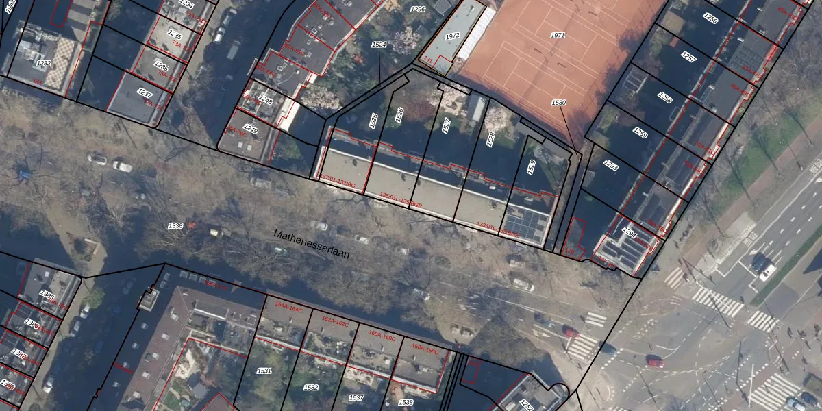 Mathenesserlaan 135-01L is gelegen op kadastraal perceel DHV00E1527. Deze kadastrale aanduiding is uniek en wordt gebruikt door het Kadaster om eigendomsrechten en andere zakelijke rechten vast te leggen. Het perceel maakt onderdeel uit van de kadastrale gemeente Delfshaven.