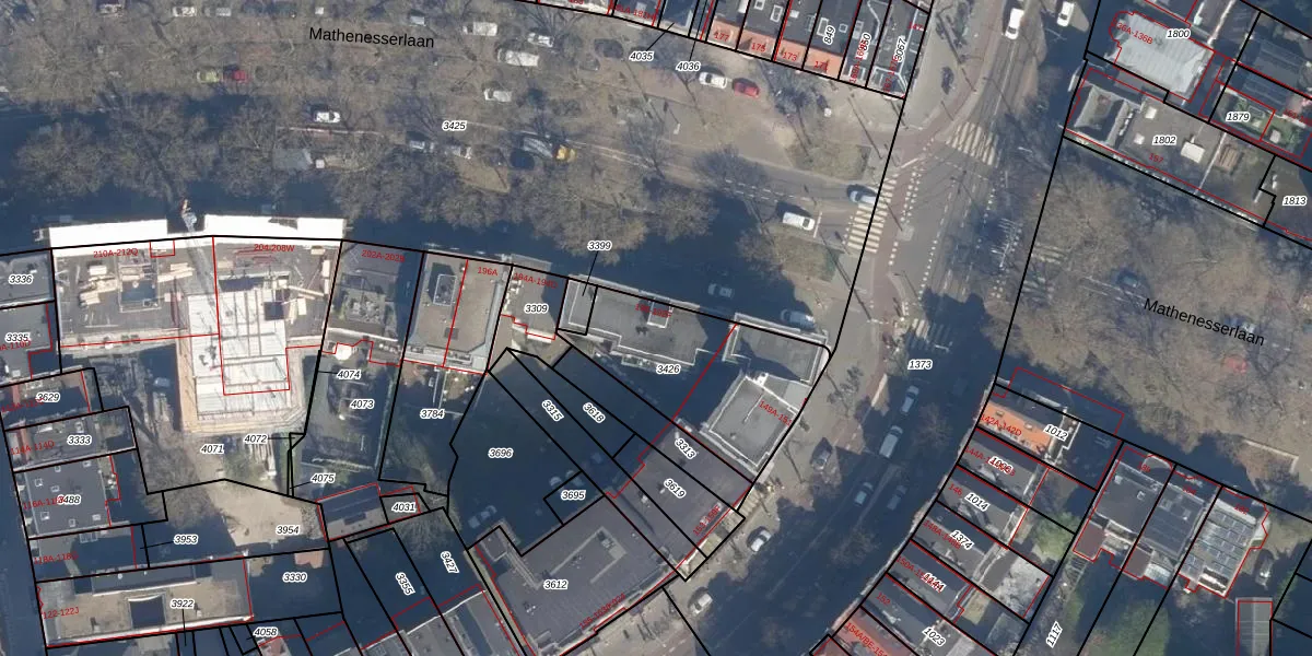 Mathenesserlaan 192-A is gelegen op kadastraal perceel DHV00D3426. Deze kadastrale aanduiding is uniek en wordt gebruikt door het Kadaster om eigendomsrechten en andere zakelijke rechten vast te leggen. Het perceel maakt onderdeel uit van de kadastrale gemeente Delfshaven.