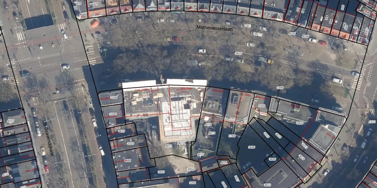 Mathenesserlaan 204 is gelegen op kadastraal perceel DHV00D4071. Deze kadastrale aanduiding is uniek en wordt gebruikt door het Kadaster om eigendomsrechten en andere zakelijke rechten vast te leggen. Het perceel maakt onderdeel uit van de kadastrale gemeente Delfshaven.